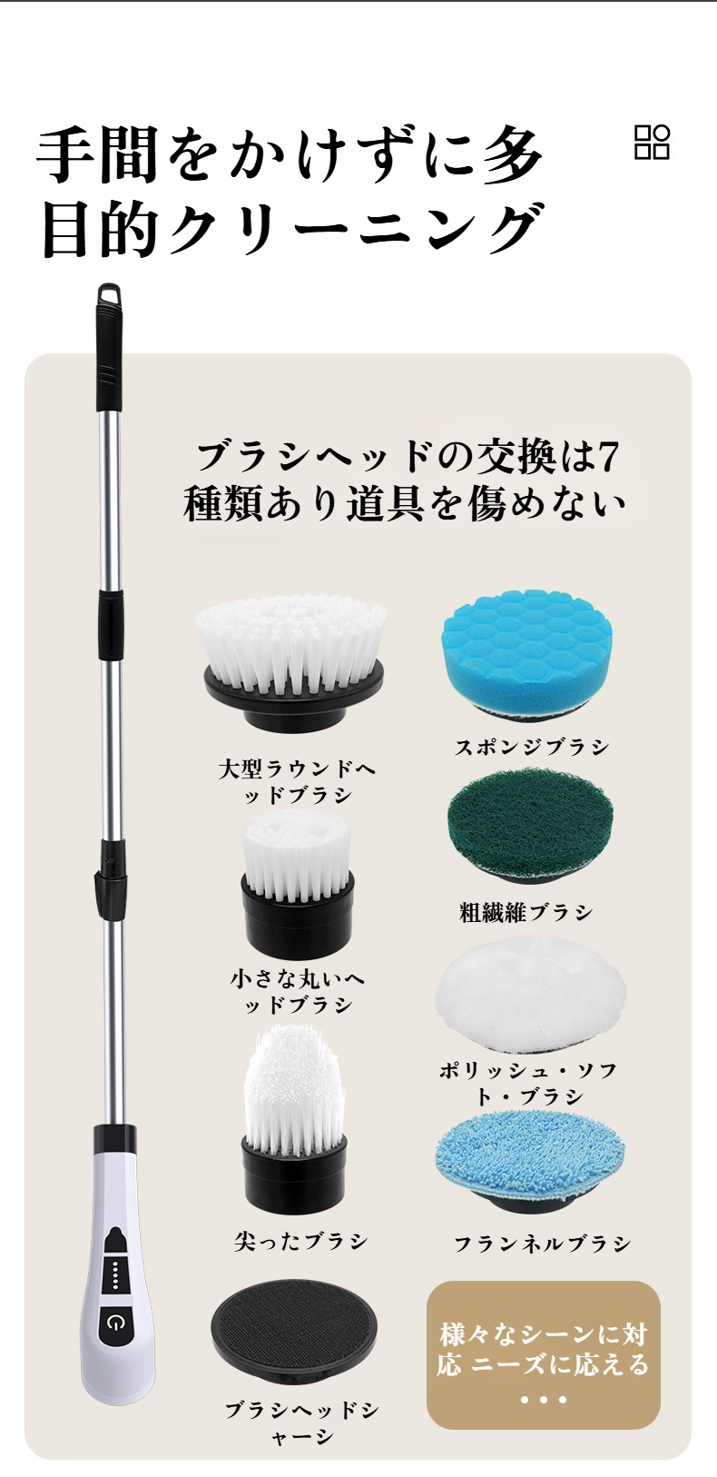 ロングハンドル電動掃除ブラシ全体画像